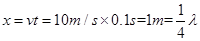 由图可知波的波长λ=4m,由题在时间t=0.1s内,波传播的距离为