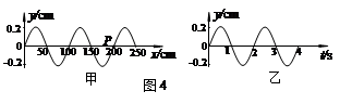 3、选择题  波速均为v=2m/s的甲、乙两列简谐横波都沿x轴正方向传播,某时刻波的图象分别如图所示,其中P、Q处的质点均处于波峰。关于这两列波,下列说法正确的是