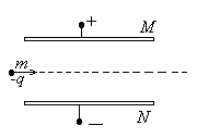 5、简答题 如图所示,M、N为两块水平放置的平行金属板,板长为l,板间相距为d,两板间加有一电压,且M板电势高于N板。今有一质量为m、电荷量为-q的小球(视为质点)平行于两金属板、并沿两板中央直线以速度v水平飞入两板间,