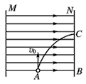 4、选择题 如图所示,M、N是竖直放置的两平行金属板,分别带等量异种电荷,两极间产生一个水平向右的匀强电场,场强为E,一质量为m、电荷量为+q的微粒,以初速度v0竖直向上从两极正中间的A点射入匀强电场中,微粒垂直打到N极上的C点,已知AB=BC。不计空气阻力,则可知