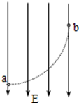 1、选择题 一带电油滴在匀强电场E中的运动轨迹如图中虚线所示,电场方向竖直向下.若不计空气阻力,则此带电油滴从a运动到b的过程中,能量变化情况为( )
