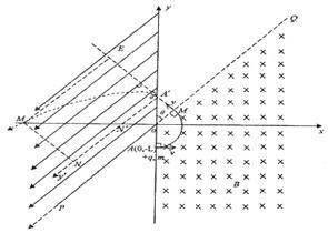点评:此类问题要求首先要分析粒子在各个区域内的运动情况,必要时画出粒子的运动轨迹图,了解图中的几何关系.利用粒子在电场中偏转时的速度的合成与分解,解决粒子在电场中运动的相关问题;利用粒子在匀速圆周运动的半径和周期公式,结合洛伦兹力提供向心力可解答粒子在磁场中运动的相关问题。粒子从磁场边界以一定的角度射入只有一个边界的匀强磁场,当再次射出磁场时,速度与边界的夹角与原来的相等。