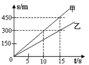 4、填空题 如图所示为甲、乙两汽车在平直的107国道上行驶的s-t图像,由图像中给出的条件得出汽车甲的速度V1=?m/s,汽车乙的速度为V2=? m/s,当t=15s时,甲、乙两汽车相距为? m。