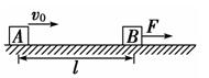 3、计算题 如图所示,水平面上放有质量均为m=1 kg的物块A和B(均视为质点),A、B与地面的动摩擦因数分别为μ1=0.4和μ2=0.1,相距L=0.75 m.现给物块A一初速度v0使之向物块B运动,与此同时给物块B一个F=3 N水平向右的力使其由静止开始运动,取g=10 m/s2.求: