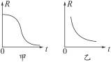 2、实验题 如图5-1-14所示,甲、乙是两类热敏电阻的Rt特征图线,如果想用热敏电阻作传感器,并与继电器相连,构成一个简单的自动报警线路,当温度过高时,由继电器接通电路报警.采用图_____________类热敏电阻较好.