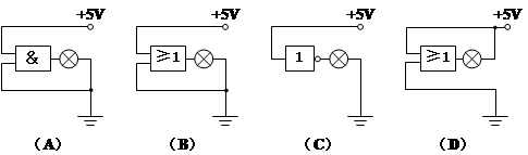 4、选择题 如图所示的逻辑电路中能让小灯亮起来的是(?)