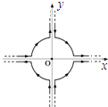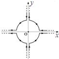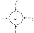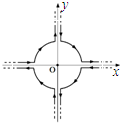 4、选择题 如图所示,无限长导线,均通以恒定电流I.直线部分和坐标轴接近重合,弯曲部分是以坐标原点O为圆心的相同半径的一段圆弧,已知直线部分在原点O处不形成磁场,则图乙中O处磁感应强度和图甲中O处磁感应强度相同的是( )