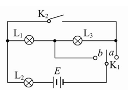 D.K2闭合,K1与b连接,三只灯泡都发光,L3的亮度小于L2的亮度