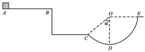 4、计算题 如图所示是某次四驱车比赛的轨道某一段.张华控制的四驱车(可视为质点),质量 m=1.0kg,额定功率为P=7W.张华的四驱车到达水平平台上A点时速度很小(可视为0),此时启动四驱车的发动机并直接使发动机的功率达到额定功率,一段时间后关闭发动机.当四驱车由平台边缘B点飞出后,恰能沿竖直光滑圆弧轨道CDE上C点的切线方向飞入圆形轨道,且此时的速度大小为5m/s,∠COD=53°,并从轨道边缘E点竖直向上飞出,离开E以后上升的最大高度为h=0.85m.已知AB间的距离L=6m,四驱车在AB段运动时的阻力恒为1N.重力加速度g取10m/s2,不计空气阻力.sin53°=0.8,cos53°=0.6,求: