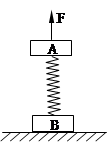 1、计算题 如图所示,一劲度系数为k = 800N/m的轻弹簧两端各焊接着两个质量均为m = 12kg的物体A、B。物体A、B和轻弹簧竖立静止在水平地面上,现要加一竖直向上的力F在上面物体A上,使物体A开始向上做匀加速运动,经0.4s物体B刚要离开地面,设整个过程中弹簧都处于弹性限度内,取g = 10m/s2,求: