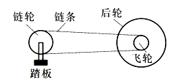4、选择题  某种变速自行车有六个飞轮和三个链轮,链轮和飞轮的齿数如下表所示,前后轮直径为660mm,人骑该车行进速度为5m/s,脚踩踏板做匀速圆周运动的最大角速度约为(?)