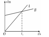 5、选择题 如下图所示的是A、B两个质点作匀速直线运动的位移—时间图线.则以下判断错误的是( )
