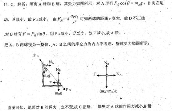 以杆为研究对象,分析受力可得,墙壁对a杆的作用力方向改变,大小减小,选项D错误。