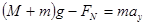 本题解析:以整体为研究对象,整体重心加速下降,为失重状态,斜面体受地面的支持力小于(m+M)g大于Mg,