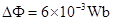 1、计算题 如图所示,一闭合线圈有200匝,总电阻R=5Ω,穿过它的磁通量在0.2 s内由6×10 -3 Wb增加到1.2×10-2 Wb,求: