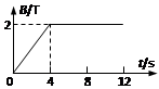 4、计算题 如图所示,水平面上有两电阻不计的光滑金属导轨平行固定放置,间距d为0.5 m,左端通过导线与阻值为2 W的电阻R连接,右端通过导线与阻值为4 W的小灯泡L连接,在CDEF矩形区域内有竖直向上的匀强磁场,CE长为2 m,CDEF区域内磁场的磁感应强度B随时间变化如图所示,在t=0时,一阻值为2 W的金属棒在恒力F作用下由静止开始从ab位置沿导轨向右运动,当金属棒从ab位置运动到EF位置过程中,小灯泡的亮度没有发生变化,求: