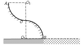 1、计算题 如图所示,AOB是游乐场中的滑道模型,它位于竖直平面内,由两个半径都是R的1/4圆周连接而成,它们的圆心O1,O2与两圆弧的连接点O在同一竖直线上.O2B沿水池的水面,O2和B两点位于同一水平面上.一个质量为m的小滑块可由弧AO的任意位置从静止开始滑下,不计一切摩擦。