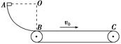 5、计算题 (2014·天津六校联考)如图所示,一质量为m=2 kg的滑块从半径为R=0.2 m的光滑四分之一圆弧轨道的顶端A处由静止滑下,A点和圆弧对应的圆心O点等高,圆弧的底端B与水平传送带平滑相接.已知传送带匀速运行的速度为v0=4 m/s,B点到传送带右端C点的距离为L=2 m.当滑块滑到传送带的右端C时,其速度恰好与传送带的速度相同.(g=10 m/s2),求: