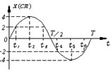 2、选择题 一质点做简谐运动的图象如图所示,在4 s内具有最大正方向速度和最大正方向加速度的时刻分别是(?)