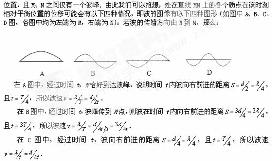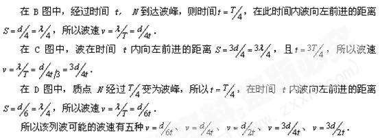 5、计算题 (13分)一列横波沿直线在空间传播,某一时刻直线上相距为d的M、N两点均处在平衡位置,且M、N之间仅有一个波峰,若经过时间t,N质点恰好到达波峰位置,则该列波可能的波速是多少