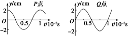 (2)以Q点开始振动的时刻作为计时的零点,试在图乙中分别画出P、Q两点的振动图象。(至少画一个周期)