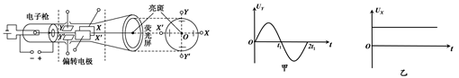 5、选择题 图为示波管的原理图,如果在电极YY′之间所加的电压按图甲所示的规律变化,在电极XX′之间所加的电压按图乙所示的规律变化,则在荧光屏上会看到的图形是 ( )