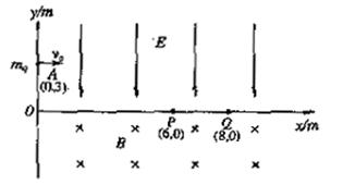 1、简答题 如图所示,y轴在竖直方向,x轴在水平方向,一质量为m,带电量为q的小球在座标为(0,0.3)A点以初速度v0平行于x轴正方向射入电场中,在y>0,x>0的空间存在沿y轴负方向的匀强电场E1,在y<0,x>0的空间存在沿x轴负方向的匀强电场E2,其中m=0.1kg,q=" +" 1.0×10-3C,v0=2m/s,