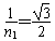 2、选择题 如图所示,一束光从空气中射向折射率n=