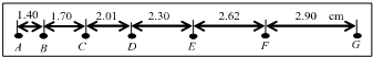 3、简答题  在研究某物体的运动规律时打下如图所示的一条纸带.已知打点计时器使用的交流电频率为50Hz,相邻两记数点间还有四个点未画出.由纸带上的数据可知,打E点时物体的速度v=______m/s,物体运动的加速度α=______m/s2.(结果保留两位有效数字)