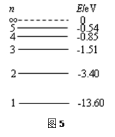 4、选择题 氢原子的部分能级如图5。大量氢原子从n=3能级跃迁到基态,辐射出的光子的能量可能是(?)