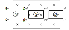 3、选择题 如图,虚线所示的范围内有一匀强磁场,磁场方向垂直纸面向里,矩形线框abcd沿水平方向并自左向右匀速通过磁场.当线框通过图中①、②、③位置时,线框内的感应电流分别为i1、i2、i3,则(?)