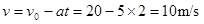 得:a= v=vt-at′="5" m/s.