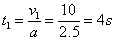 (2)警车刚达到最大速度v=90km/h=25m/s的时间: t =