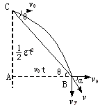 5、计算题 从倾角为θ的斜面顶点C处水平抛出一物体,初动能为10 J,物体到达斜面底端B处时,动能变为130 J。不计空气阻力,试求斜面的倾角。