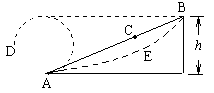 D.若把斜面AB变成光滑曲面AEB,物体沿此曲面上升仍能达到h高度