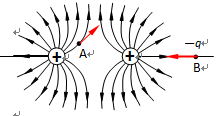小题2:场强方向即为电场线的切线方向,负电荷所受电场力方向与场强方向相反,所以可知A点的场强方向以及B处负电荷所受电场力方向,如下图