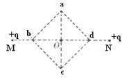 5、选择题 如图所示,M、N处各放置电荷量为q的正点电荷,O为正方形abcd的中心且与MN连线中点重合,对角线ac与MN垂直,取无穷远处电势为零,则?