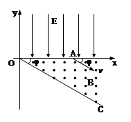4、计算题 如图所示,在xOy平面的第一象限有一匀强电场,电场的方向平行于Y轴向下,在X轴和第四象限的射线OC之间有一匀强磁场,磁感应强度的大小为B,方向垂直于纸而向外。有一质量为m,带有电荷量+q的质点由电场左侧平行于X轴射入电场。质点到达X轴上A点时,速度方向于X轴的夹角为,A点与原点0的距离为d.接着,质点进入磁场,并垂直丁OC飞离磁场。不计重力影响。若OC与x轴的夹角也为φ.