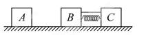 1、计算题 如图,A、B、C三个木块的质量均为m。置于光滑的水平面上,B、C之间有一轻质弹簧,弹簧的两端与木块接触但不固定,将弹簧压紧到不能再压缩时用细线把B和C连接,使弹簧不能伸展,以至于B、C可视为一个整体,现A以初速v0沿B、C的连线方向向B运动,与B相碰并粘合在一起,以后细线突然断开,弹簧伸展,从而使C与A、B分离,已知C离开弹簧后的速度恰为v0,求弹簧释放的势能。