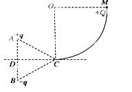 4、选择题 如图所示,竖直平面内1/4光滑圆弧轨道半径为R,等边三角形ABC的边长为L,顶点C恰好位于圆周最低点,CD是AB边的中垂线。在A、B两顶点上放置一对等量异种电荷。现把质量为m带电荷量为+Q的小球由圆弧的最高点M处静止释放,到最低点C时速度为v0 。不计+Q对原电场的影响,取无穷远处为零电势,静电力常量为k,则(?)