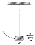 5、计算题 如图所示,质量为m的子弹,以速度v水平射入用轻绳悬挂在空中的木块,木块的质量为M,绳长为L,子弹射入木块即停留在木块中,求子弹射入木块的瞬间绳子张力的大小。