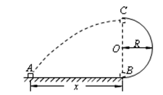 4、计算题 (9分) 如图所示,水平轨道AB与竖直半圆形光滑轨道在B点平滑连接,半圆形轨道半径R=2.5m,质量m=0.1kg的小滑块(可视为质点)以一定的速度从水平轨道进入半圆形轨道,沿轨道运动恰好能到最高点C,且从C点水平飞出后恰好落在A点,重力加速度g=10m/s2,试分析求解: