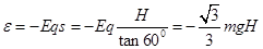 2、选择题 如图所示,质量为m的小球(视为质点),带电+q,开始时让它静止在倾角α=600的固定光滑绝缘斜面顶端,整个装置放在水平方向、大小为E=mg/q的匀强电场中(设斜面顶端处电势为零),斜面高为H。释放后,设物块落地时的电势能为
