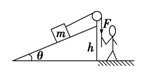 3、选择题 (2011年杭州学军中学检测)人通过滑轮将质量为m的物体,沿粗糙的斜面由静止开始匀加速地由底端拉上斜面,物体上升的高度为h,到达斜面顶端的速度为v,如图所示.则在此过程中( )