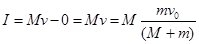 1、选择题 如图所示,在光滑水平面上有一质量为M的木块,木块与轻弹簧水平相连,弹簧的另一端连在竖直墙上,木块处于静止状态,一质量为m的子弹以水平速度v0击中木块,并嵌在其中,木块压缩弹簧后在水平面做往复运动。木块自被子弹击中前到第一次回到原来位置的过程中,木块受到的合外力的冲量大小为