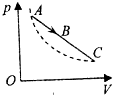 2、选择题 如图所示,一定质量的气体由状态A到状态B再到状态C的过程,A、C两点在同一条双曲线上,则此变化过程中( )