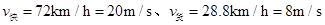2、计算题  (12分)一列货车以28.8km/h的速度在平直铁路上行驶,由于调度事故,在后方700m处有一列快车以72km/h的速度同向行驶,快车司机发觉后立即合上制动器,但快车要滑行2000m才能停下,试通过计算判断两车是否会相撞。