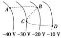 4、选择题 (2011年杭州毕业班综合测试)如图所示表示某静电场等势面的分布,电荷量为1.6×10-9 C的正电荷从A经B、C到达D点.从A到D,电场力对电荷做的功为( )