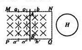 3、选择题 如图所示,电阻可忽略的平行导轨MN与PQ,闭合导线环H与导轨在同一水平面,有匀强磁场垂直穿过导轨平面。金属杆AB与导轨保持良好接触,并沿导轨在aa′ 与bb′之间做简谐运动,平衡位置在OO′,当H中沿逆时针方向的感应电流最大时,AB杆应处于