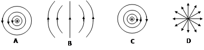 2、选择题 通电直导线周围的磁场,其磁场线分布和方向用图中哪个图表示最合适